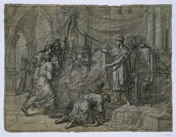 В начале XIX века ИАХ все чаще избирает сюжеты из отечественной истории. В 1806 году по предложению почетного любителя Академии графа С. О. Потоцкого воспитанникам была задана программа «Русская правда». Витберг стремился к романтической трактовке события, придавая героям яркие эмоциональные характеристики и отказываясь от рельефного построения композиции, характерного для классицизма. (Н. С.)