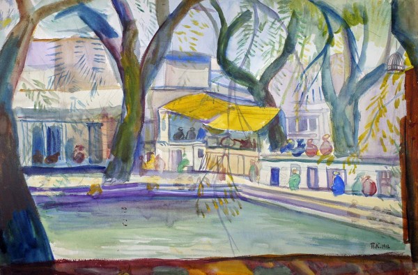 В ряде эскизно написанных темпер с изображением бассейна в Бухаре мастер запечатлел натурные сцены «сладостного ничегонеделания» с мотивами спокойного созерцания на берегу, неторопливой беседы под сенью чинары — «Чайхана» (Р-54929), «У водоема» (Р-54927), «Водоем» (Р-54928). Там же. С. 14.