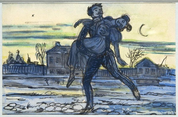 - Бумага, акварель одноцветная, тушь, перо. 12,6 x 19