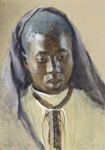Значительная часть жизни Гуго Бакмансона, профессионального военного и художника-баталиста, выпускника Санкт-Петербургской Академии художеств, прошла в путешествиях. Начиная с конца 1890-х годов он часто бывал в Северной Африке, подолгу жил в Марокко и Тунисе, возвращаясь туда вновь и вновь. Многочисленные этюды, созданные им в поездках, регулярно экспонировались на выставках Петербурга и Москвы. Одним из самых притягательных мест для художника стал Танжер, крупный портовый город на севере Марокко. Здесь в 1908–1910 годах он исполнил акварельные виды и портретные зарисовки местных жителей. Вероятно, его интерес к городу не ограничивался вниманием только к типажам и яркости красок природы. В начале XX века Танжер оказался важным центром европейской политики и происходившие в нем события, такие как Танжерский и Агадирский кризисы, оказали влияние на ход мировой истории. После разделения страны в 1912 году на французский и испанский протектораты, в 1923 году Танжер признали международной зоной под управлением Испании, Франции и Британии, обозначив его особый статус. Наталия Соломатина // Африка в русском искусстве. СПб. 2023. С. 66.
