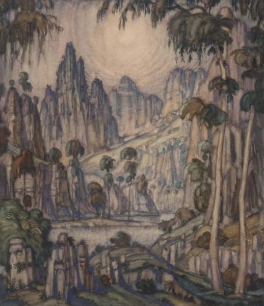 Большой массив произведений <Константина Богаевского> составили работы, посвященные античному Крыму, словно увиденному сквозь призму пышных полотен и гобеленов XVII столетия, — картины «Утро» (1910, ГТГ) и «Классический пейзаж» (Ж-2338), акварели «Пейзаж» (Р-5168), «Пейзаж» (Р-13507), «Утро» (Р-5832), «Фантастический пейзаж с солнцем» (Р-57562). Они представляют собой остро индивидуальный «симбиоз» реальности, интуитивистских прозрений картин далекого прошлого и сладостно-грустного поэтического вымысла. Владимир Круглов. Константину Богаевскому 150 лет // Константин Богаевский. СПб. 2023. С. 9.