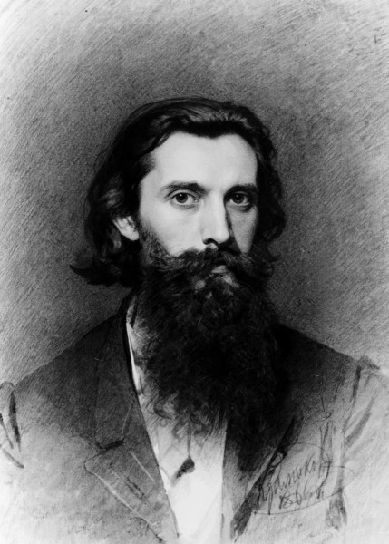 <В 1861 году> на академической выставке рядом с салонными «Женскими головками», с многочисленными «сладкими» акварелями ... и ходульными портретами ... впервые появились четыре исполненных в технике соуса работы И. Крамского, на которых предстали близкие ему соученики. Эти деловые, аскетические по манере, отвечающие мировосприятию людей эпохи просветительства портреты, созданные согласно концепции Крамского на основе аналитической оценки личности с выявлением характерных, отмеченных печатью времени черт, положили начало иконографии молодой, мыслящей художественной России – представителей нового поколения, подхваченного волной революционно-демократического движения.