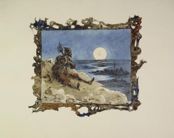 - Бумага, акварель, графитный карандаш, процарапывание. 21,6 x 27,4