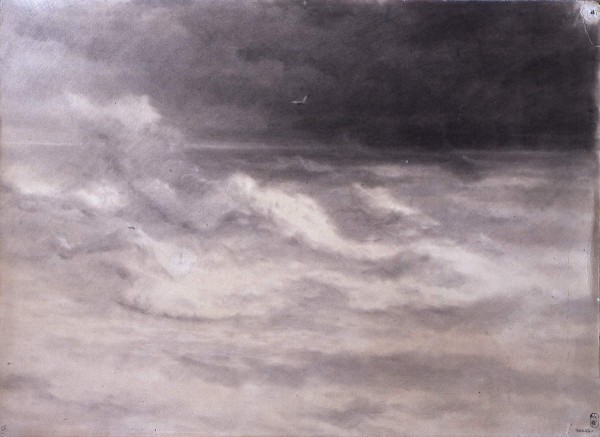 Море волнует художника не менее, чем горы. Вздымающимся или стремительно несущимся на берег пенистым волнам он посвящает целую серию рисунков, исполненных графитным карандашом с растушкой, достигая в них мягкой пластической характеристики как волн, так и облаков, переданных в их живом движении. Ирина Шувалова. Куинджи в Русском музее // Архип Куинджи. СПб, 2010. С. 34.