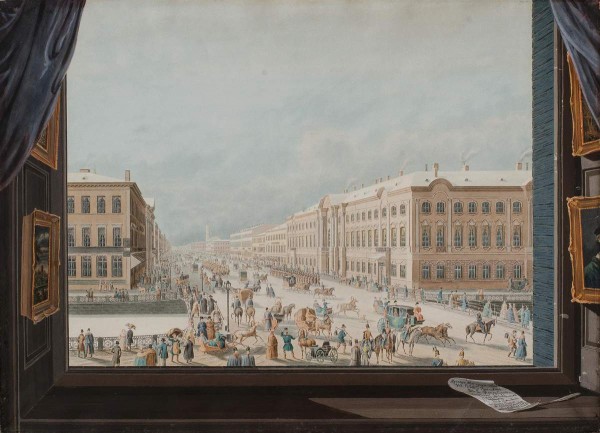 Вестерлинг запечатлел перспективу Невского проспекта, открывающуюся из окна дома у Полицейского моста. Главное место среди зданий, которые изобразил художник, занимает Строгановский дворец. Стремление художника быть точным и достоверным в изображении архитектурных построек делает эту акварель своего рода художественным документом, сохранившим облик Невского проспекта середины XIX века. В настоящее время Строгановский дворец является одним из дворцов, принадлежащих Государственному Русскому музею. Наталия Соломатина // Санкт-Петербург: Портрет города и горожан. СПб, 2003. С. 198.