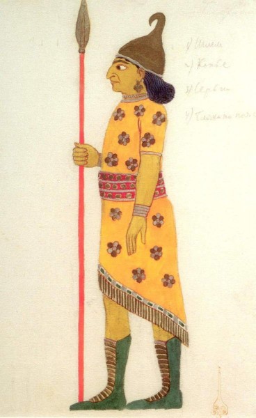 Эскиз костюма к спектаклю по пьесе Ф. Геббеля «Юдифь». Мужской костюм (Воин с копьем)
