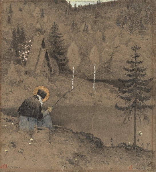 - Бумага, акварель, графитный карандаш, белила, золото. 26 x 23,5