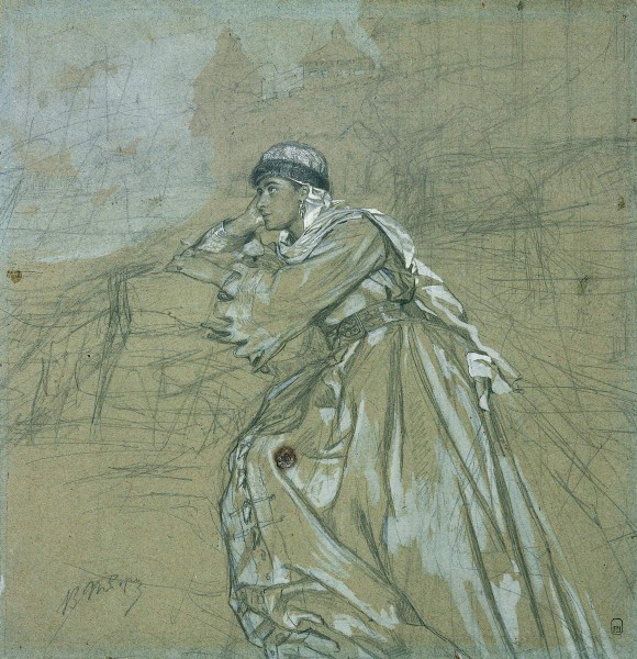 - Бумага серая, графитный карандаш, белила. 33,5 х 32,4