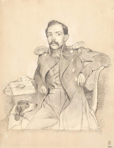 - Бумага, графитный карандаш. 21 x 18,5 (лист неправильной формы; рисунок обрезан по контуру и наклеен на бумагу, штриховка на которой нанесена посторонней рукой)