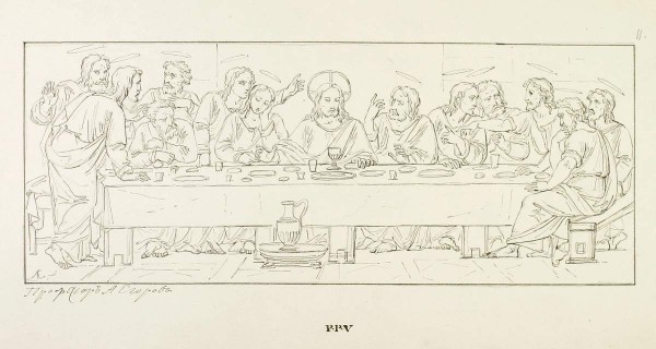 «Когда же настал вечер, Он возлег с двенадцатью учениками; / И когда они ели, сказал: истинно говорю вам, что один из вас предаст Меня. Они весьма опечалились и начали говорить Ему, каждых из них, не я ли, Господи? Он же сказал в ответ: опустивший со Мною руку в блюдо, этот предаст Меня; / Впрочем Сын Человеческий идет, как писано о Нем; но горе тому человеку, которым Сын Человеческий предается: лучше было бы этому человеку не родиться. При сем и Иуда, предающий Его, сказал: не я ли, Равви? Иисус говорит ему: ты сказал». Мф. 26, 20–25; Мк. 14, 18–25; Лк. 22, 14–38; Ин. 13, 1–38. Иисус Христос. СПб, 2000. С. 189.