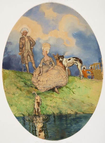 - Paper, watercolour, bronze. 74,6 x 55,2. (овал)