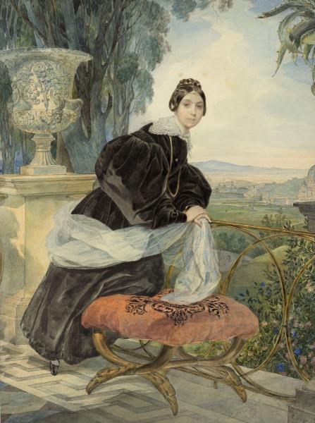 Светлейшая княгиня Салтыкова Елизавета Павловна (урожденная графиня Строганова, 1802–1863) — дочь генерал-адъютанта графа П. А. Строганова (1774–1817) и его жены Софьи Владимировны Строгановой (урожденной Голицыной, 1775–1845). Была замужем за светлейшим князем И. Д. Салтыковым (1797–1832). С. Д. Алексеев // Великий Карл. К 225-летию со дня рождения К. П. Брюллова. СПб, 2024. С. 350.