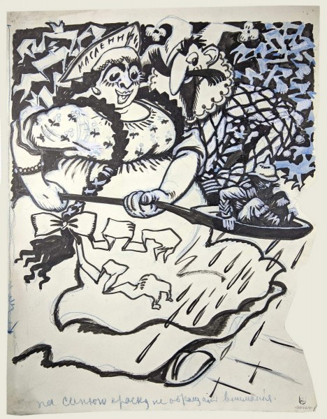 - Бумага, тушь, карандаш синий. 33,4 x 25,6