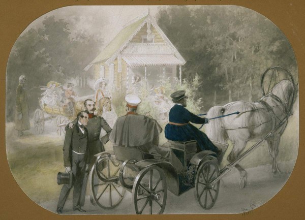 В 1858 Зичи исполнил, как считает Л. А. Алешина, серию из двадцати акварелей «Карьера неизвестного сановника». Рисунки, дополненные на паспарту оригинальными названиями и указанием имен многих изображенных лиц, приобретают характер художественного документа. Наталия Соломатина // Санкт-Петербург: Портрет города и горожан. СПб, 2003. С. 189.
