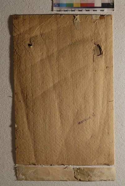 На оборотной стороне имелось неравномерное пожелтение, многочисленные пятна разнохарактерных загрязнений.