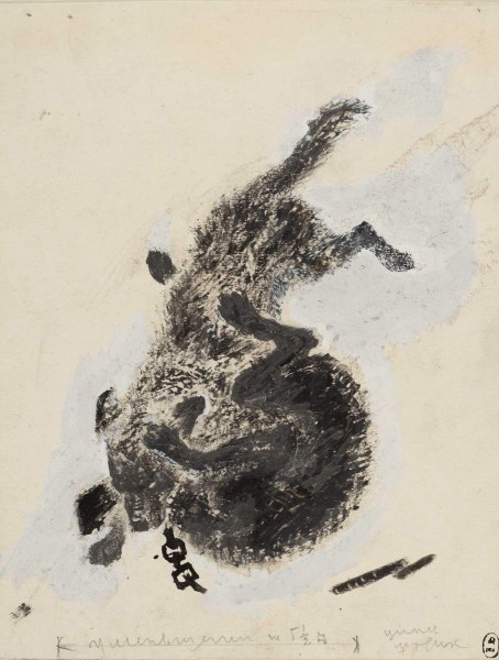 - Бумага, белила, тушь, литографский карандаш, графитный карандаш. 21,9 x 16,9