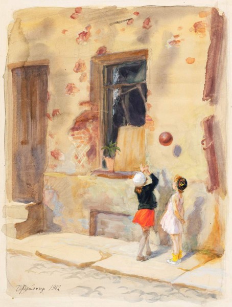 Главная Онлайн ресурсыКоллекцияРисунок и акварель Ленинград. После обстрела Фитингоф Г. П. 1905, Псков – 1975, Ленинград Ленинград. После обстрела 1942 Бумага, акварель, гуашь. И.: 35,5 x 27; л.: 40,2 x 31,1 РС-1740 Пост. в 1942 с выставки "Ленинград в дни блокады" (ГМИИ им. А. С. Пушкина, Москва) через Управление по делам искусств при СНК РСФСР Период Первая половина XX века КатегорияБытовой жанр Ключевые слова Великая Отечественная война | Блокада Ленинграда 1941–1944 | советское искусство | дети | детский костюм | головные уборы | война | игра | Санкт-Петербург – Петроград – Ленинград Участие в виртуальных выставках и 3D-турах Да будет мерой чести Ленинград!Помним! К 80-летию полного освобождения Ленинграда от фашистской блокады Поделиться «Виртуальный Русский музей» в социальных сетях: