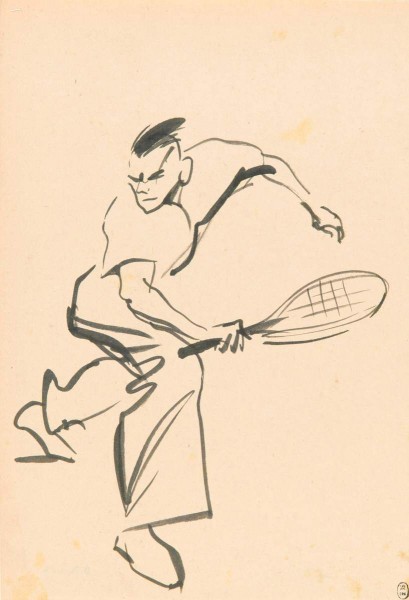 В искусстве послевоенных лет спортивная тематика уже не звучала так бравурно и футуристично. Изнуренный опустошительной войной народ желал не новых достижений, а мирного неба над головой. Впереди была кропотливая работа по восстановлению страны, нужно было осмыслить и пережить потери, осознать, как и куда двигаться дальше. Пафосные сюжеты уступают место камерным зарисовкам, в которых спорт — скорее мирный досуг свободных граждан, а не подготовка к суровым испытаниям. Целые серии некрупных жанровых рисунков охватывают значительный пласт послевоенной спортивной жизни, изучая ее под новым углом. Егор Могилевский. «Молодежь — на стадионы!» // Спорт в советском фарфоре, графике, скульптуре. СПб, 2018. С. 7-8.