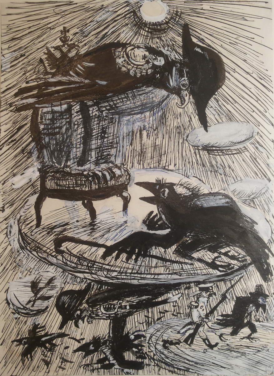 Ворон-челобитчик. Иллюстрация к сказке М. Е. Салтыкова-Щедрина. Вариант