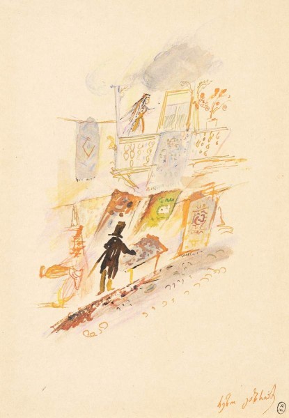 - Бумага желтая, watercolours, ink, silver paint. 30 x 21,1