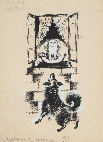 В рисунках же к басне Ивана Крылова «Две собаки» Ермолаева создает иллюстрации, напоминающие о прошедшей эпохе, стилизуя их под декоративный почерк художников школы «Мира искусства», таких как Александр Бенуа. Рисунки имеют «буржуазный» характер, столь порицаемый в эпоху соцреализма,— но того требует замысел Крылова. Благополучная Жужа и дворовый пес Барбос должны быть переданы максимально антагонистично: кудрявая болонка на шелковых подушках («и ем и пью на серебре») и промокшая дворняга из грязной подворотни («здесь под забором сплю и мокну под дождем»). Созданный Верой Ермолаевой визуальный контраст между персонажами прекрасно иллюстрирует замысел баснописца. Там же. С. 237.