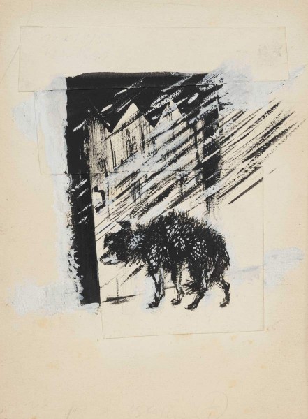 - Бумага, белила, чёрная акварель. 17,7 x 13,1