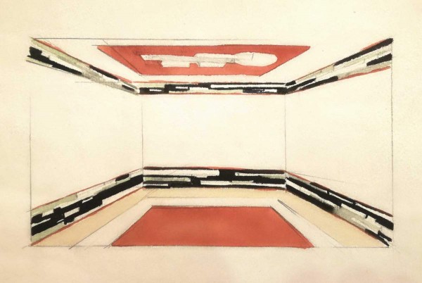 - Бумага, тушь, графитный карандаш, акварель. Л.: 12,7 x 18; и.: 7,8 x 13,6