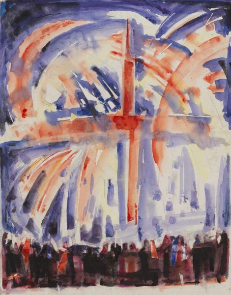 - Бумага «верже», акварель, графитный карандаш, наклейки. 63,4 x 49