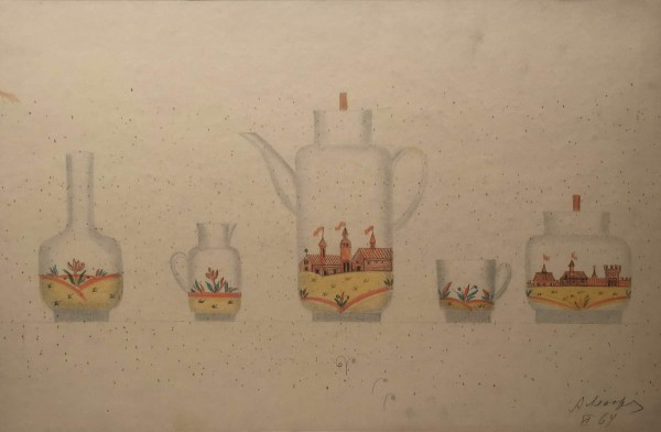 Эскиз росписи чайно-кофейного сервиза «Русский лубок». 1964. Форма «Нева-2»