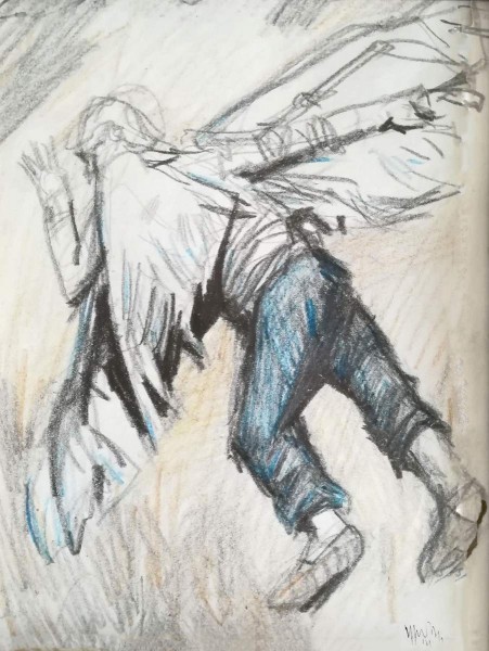 - Paper, graphite pencil, цветной карандаш. 13,6 x 17,8