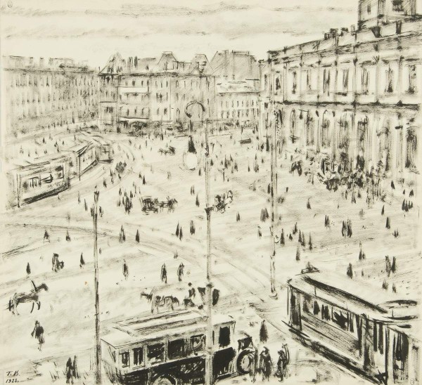 Творческая деятельность Верейского неразрывно связана с городом на Неве. С момента переезда сюда (1911) и вплоть до самой смерти (1962) ленинградский пейзаж постоянно присутствует в произведениях художника. Рисунком „Московский вокзал. Площадь Восстания" он открывает целую серию работ, отражающих кипучую жизнь ключевого города страны. Виктория Белая // Санкт-Петербург: Портрет города и горожан. СПб, 2003. С. 206.