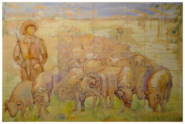Значительное место [в творчестве П. Кузнецова в 1930-е годы] по-прежнему занимало изображение работы на земле. Таковы солнечный, выдержанный в гамме нежных тонов холст «Колхоз в Армении» (1936, Ж-9071) и мастерская акварель «Колхозные стада» (1935-1936, РС-6070). Владимир Круглов. Павлу Кузнецову 145 лет // Павел Варфоломеевич Кузнецов. СПб, 2023. С. 18.