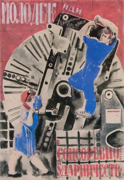 Эскиз плаката «Молодежь иди в соцсоревнование и ударничество»