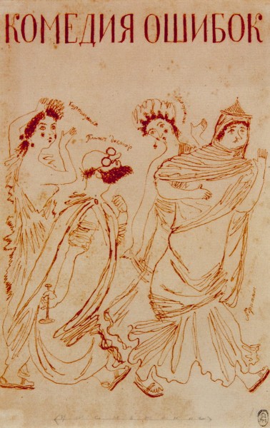Из книги воспоминаний художника «Мой творческий путь»: «Я сделал "Комедию ошибок" Шекспира ‒ сангиной. Дромио эфесский и Дромио сиракузский в какой-то мере ориентировали меня на эллинистическую эпоху, и я сделал иллюстрации в духе кроки фресковой или вазовой. В печати эта серия иллюстраций не вышла, так как какой-то литературовед объявил, что пьеса эта не принадлежит Шекспиру, и она была изъята из однотомника».