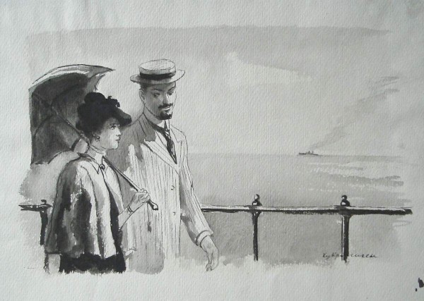 Гуров и Анна Сергеевна на прогулке. Иллюстрация к рассказу А. П. Чехова «Дама с собачкой»