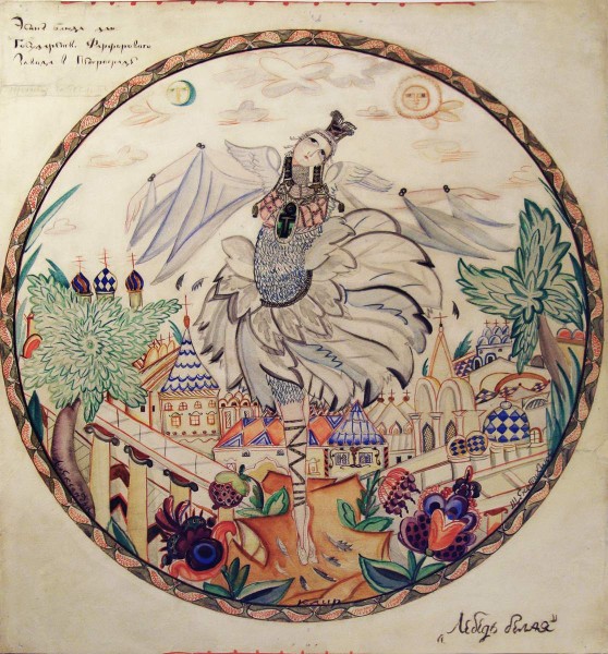 Эскиз блюда для Государственного Фарфорового завода в Петрограде «Лебедь белая»