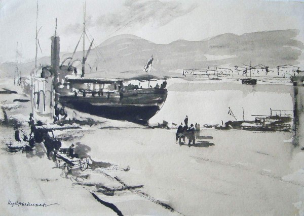 На пристани. Иллюстрация к рассказу А. П. Чехова «Дама с собачкой»