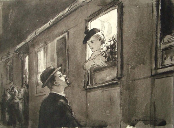 Гуров провожает Анну Сергеевну. Иллюстрация к рассказу А. П. Чехова «Дама с собачкой»