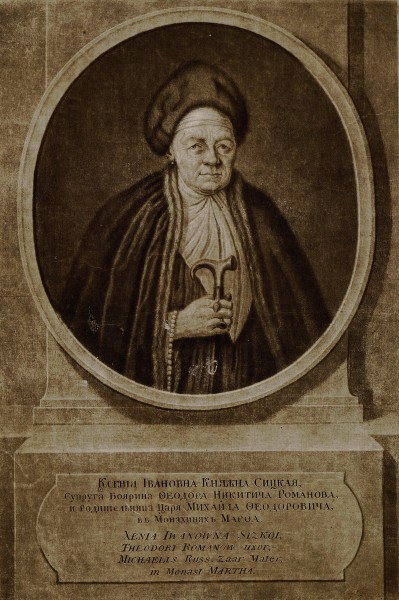 Ксения Ивановна Романова (старица Марфа; урожденная Шестова (? — 1631, Москва) — боярыня, мать царя Михаила Федоровича, супруга Фёдора Никитича Романова (патриарха Филарета). Была выдана замуж за Фёдора Романова около 1585 года. При Борисе Годунове вместе с мужем была насильно пострижена в монашество. В 1601 году сослана в Заонежье, в село Толвуя на берегу Онежского озера и разлучена с детьми — Михаилом и Татьяной (единственные выжившие из её шести детей). В 1606 году по приказу нового царя Лжедмитрия I, который старался демонстрировать своё родство со старой знатью, Романовы были освобождены. Инокиня Марфа воссоединилась с сыном. Годы 1606–1608 Марфа прожила, вероятно, в Ростове, куда Филарет был поставлен в митрополиты. Затем жила с сыном в костромском Ипатьевском монастыре. Когда послы земского собора просили Михаила на царство, она отказывала, ссылаясь на его юность, но в 1613 году он все-таки был избран. Мать благословила сына на царство Феодоровской иконой Божией Матери, и с этого момента икона стала одной из святынь дома Романовых.
