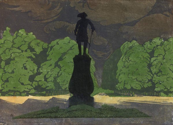 О работе над этим эстампом художница вспоминала: «Много я возилась с гравюрой „Павел I“. Никак не удавалось выразить то, что хотелось. Мрачная фигура Павла, трагичная и жалкая на фоне сияющей солнечной природы, и темные грозовые тучи, собирающиеся на небе» (Остроумова-Лебедева, 2003. Т. I–II. С. 257–258).