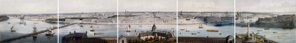 Панорама города Санкт-Петербурга. Вид с Петропавловской крепости на часть Летнего сада, Французскую набережную и Смольный