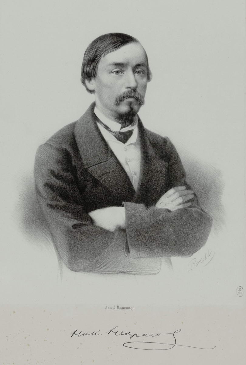 Некрасов Николай Алексеевич (1821–1877/1878) — поэт, прозаик и публицист. Родился в дворянской помещичьей семье. В 17 лет, вопреки воле отца, желавшего для сына военной карьеры, уехал в Петербург, чтобы поступить в университет. За самоволие отец лишил его всякой материальной поддержки, и, чтобы не умереть с голоду, Некрасов занимался репетиторством, сочинял стихи и рассказы по заказу столичных книготорговцев, получая за это гроши. В это время он познакомился с В. Г. Белинским, оказавшим на него огромное влияние — нравственное, литературное и идеологическое. В 1847 году Некрасов вместе с писателем И. И. Панаевым приобрел журнал «Современник», основанный А. С. Пушкиным. В 1862 году правительство приостановило издание на восемь месяцев, а в 1866 году совсем запретило его. Спустя полтора года Некрасов арендует «Отечественные записки» и совместно с М. Е. Салтыковым-Щедриным с 1868 года до самой смерти остается редактором этого журнала. Отличительными особенностями его творчества были изображение тяжелой жизни крестьянства и городской бедноты, сочувствие нелегкой женской доле. Сам он говорил о себе: «Я лиру посвятил народу своему», а свою музу называл «музой мести и печали». Портретная галерея Русского музея. Лица России. СПб. 2012. С. 123.