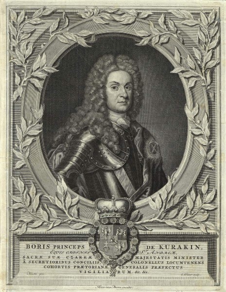 Князь Борис Иванович Куракин ( 1676, Москва — 1727, Париж) — сподвижник Петра Великого, первый постоянный посол России за рубежом; действительный тайный советник. С началом Северной войны участвовал в походе под Нарву (1700), затем участвовал в осаде и взятии Нотебурга (1702), Ниеншанца (1703) и Нарвы (1704), в 1703 году получил чин майора лейб-гвардии Семёновского полка.