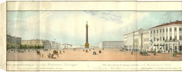 Фрагмент 1. Вид Дворцовой площади и памятника императору Александру I с надписью «Александру I благодарная Россия»