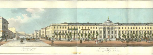 Показать полный текст«Невский проспект есть без сомнения лучшая улица в мире, как по правильности, длине и ширине своей, так, и по красоте и великолепию зданий <…> Поэт мог бы смело назвать Невский проспект душою Петербурга». Так откликнулись на издание первой части «Панорамы Невского проспекта» в 1830 издатели газеты «Северная пчела». С момента выхода в свет и до наших дней эта литография остается одним из самых главных и лучших произведений, посвященных Петербургу и его главной улице. В 30-х годах XIX века Невский проспект уже приобрел тот законченный вид, который сохранился до наших дней без значительных изменений: сложились ансамбли Дворцовой площади и Адмиралтейства, площадь у Казанского собора, восточная часть Невского проспекта от Садовой улицы до Аничкова моста. Рядовая застройка была отмечена продуманностью пропорций и близостью архитектурных решений, что придавало облику проспекта изящество и завершенность. «Панораму Невского проспекта» можно без преувеличения назвать памятником истории русской культуры и одновременно энциклопедией обычной городской жизни. Пушкин и его время в гравюре // «Он победил и время и пространство...». К 225-летию со дня рождения А. С. Пушкина. СПб, 2024. С. 149.