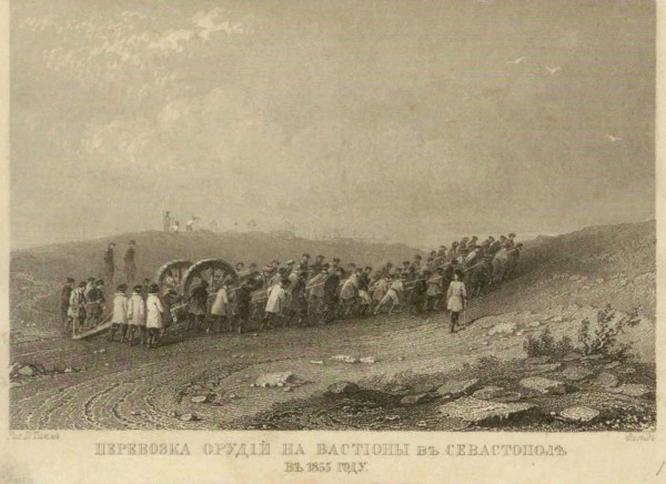 Перевозка орудий на бастионы в Севастополе в 1855 г