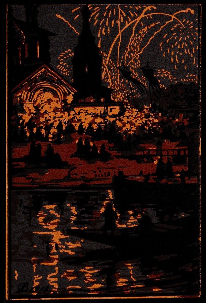 - Coloured linocut. И.: 13,7 х 9,2. Л.: 13,7 х 9,2