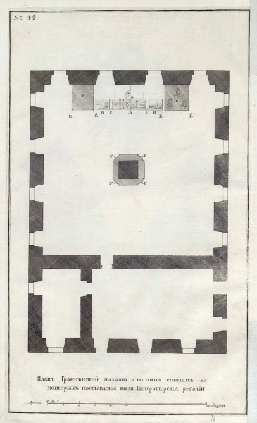 № 44. План Грановитой палаты со столами, на которые были поставлены императорские регалии
