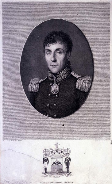 Под изображением: слева – Писал сухими красками, Г. Вагнер; справа подпись гравера и дата; ниже герб с надписью — Безъ лести преданъ; ниже — родился 25 сентября 1769 года.