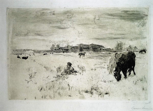 • Офорт. И.: 34,3 х 51,4; д.: 35,8 х 53,6; л: 53,4 х 79,3
